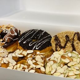 This cute donut shop/café is located in a busy shopping center is right on the corner. Parking is a little tight, but you should be able to get in and out with no problem. I really like that they have fresh baked cookies, different milk, teas, and other goodies, in addition to their donuts. I also tried a sandwich for lunch and it definitely hit the spot.